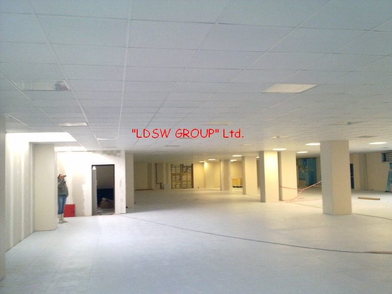 Доставка и монтаж на 1200 кв.м растерен окачен таван от високо хигиенични, влагоустойчиви, гипсови пана. Доставка и монтаж на 1100 кв.м двупластова, предстенна обшивка от обикновен гипсокартон на метална конструкция, с включена шпакловка и крайно покритие от венилова облицовка.
